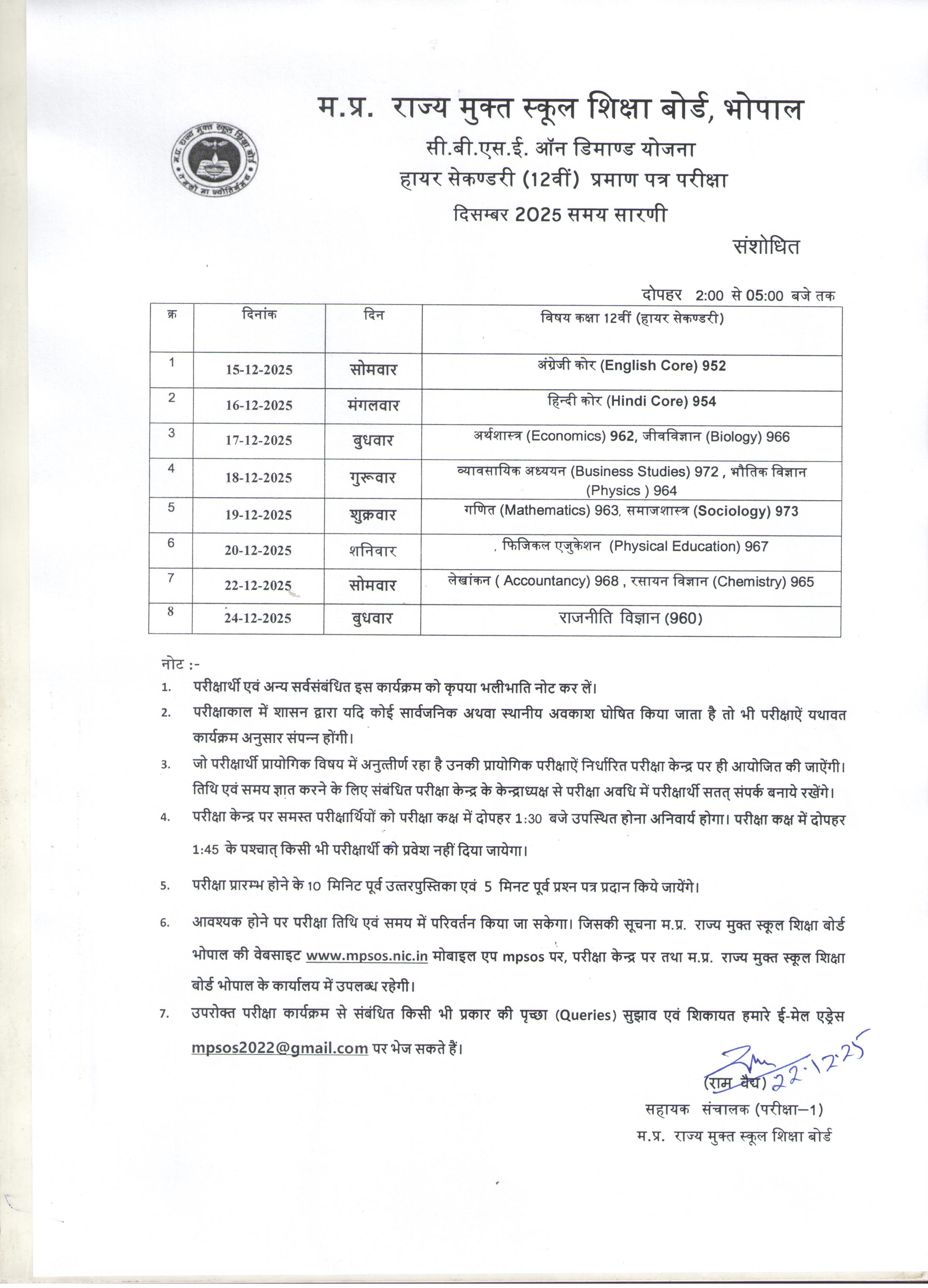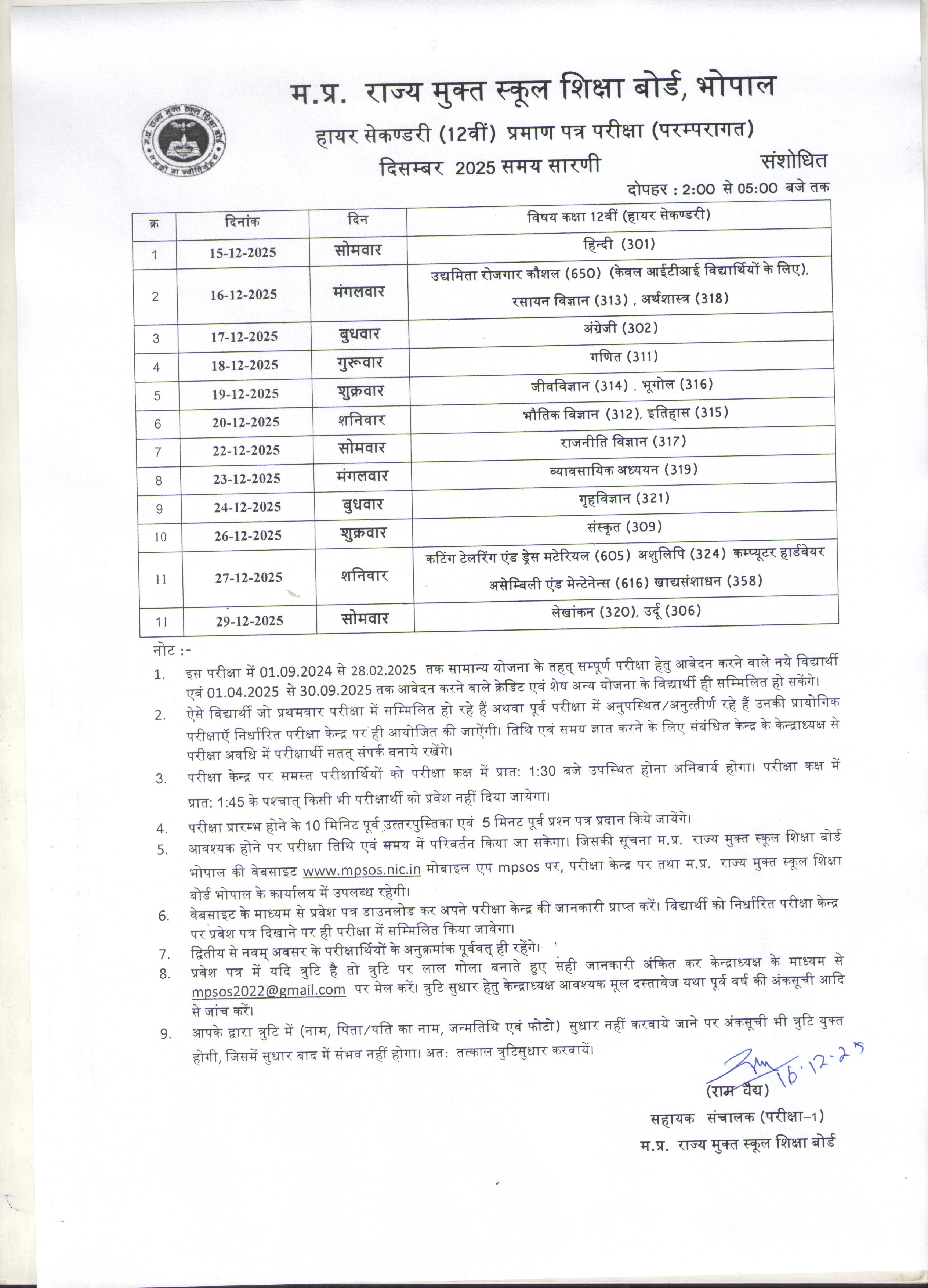 Open School December 2025 Class 12th (Update)