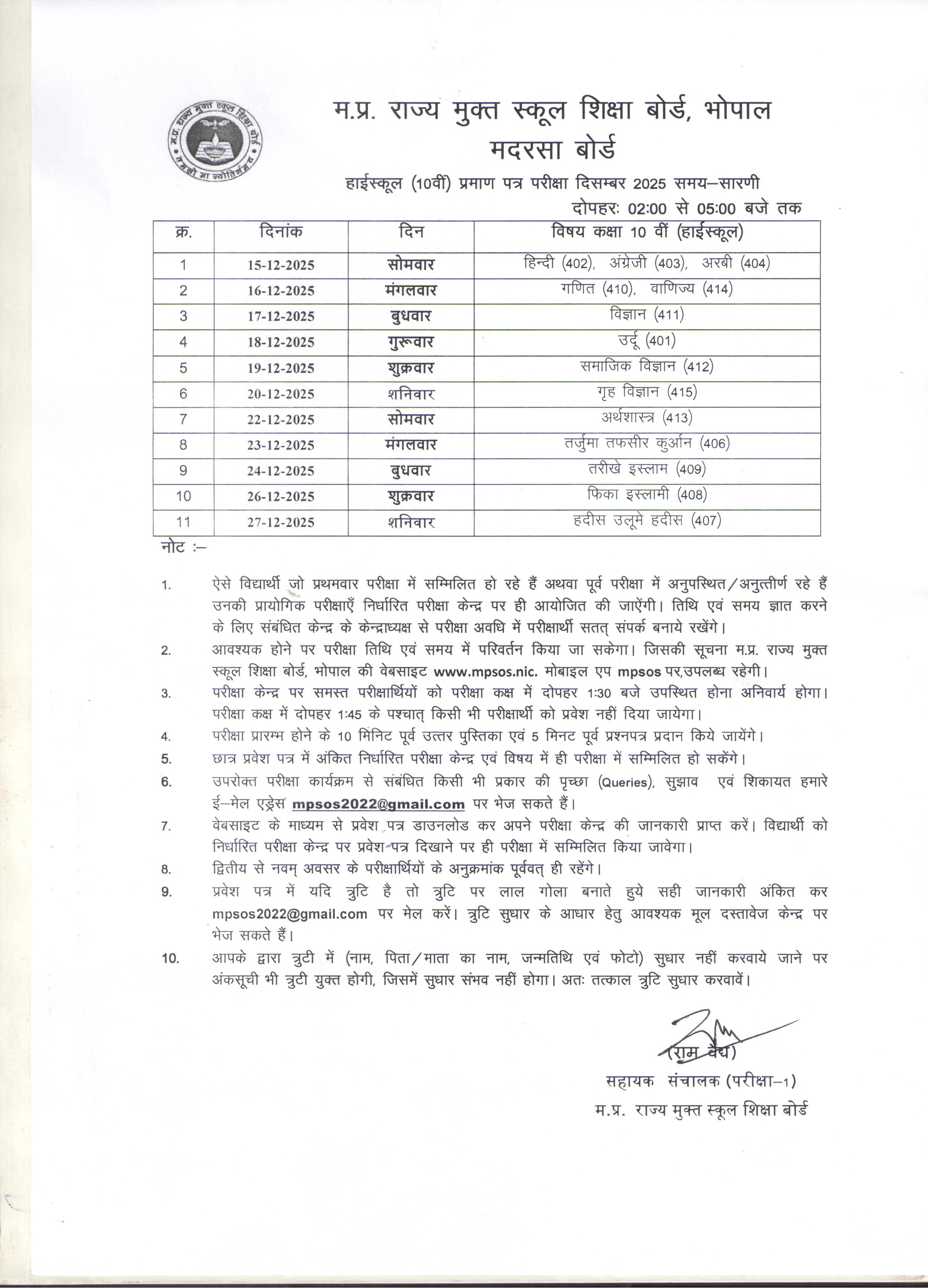 Open School December 2025 Class 10th (Update)
