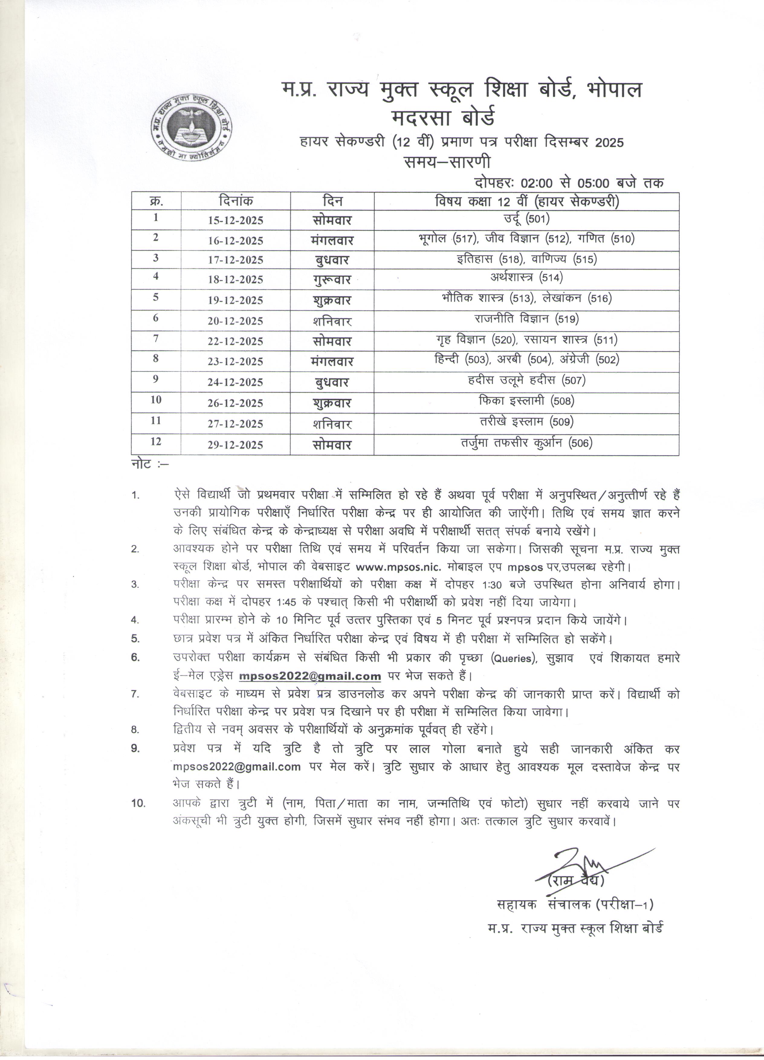 Madarsa December 2025 Class 12th